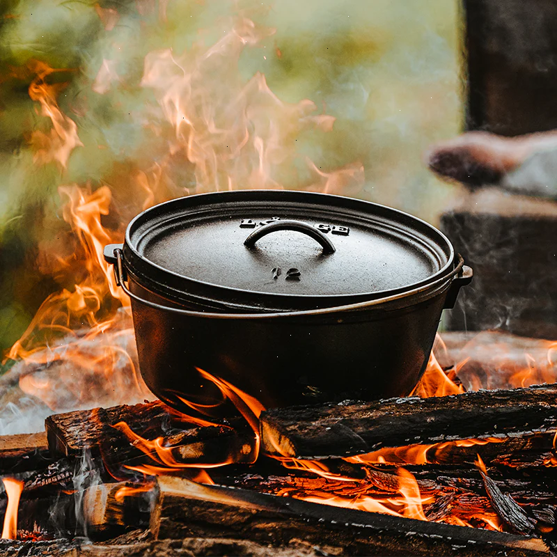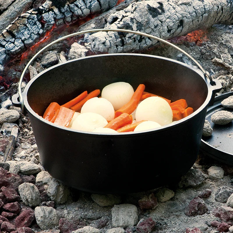 This camp dutch oven is outfitted with clever legs and a bail handle for any outdoor kitchen set-up. Cast iron provides great heat retention, durability, and a seasoned cooking surface that ensures campfire cooking goes off without a hitch. Who brought marshmallows?