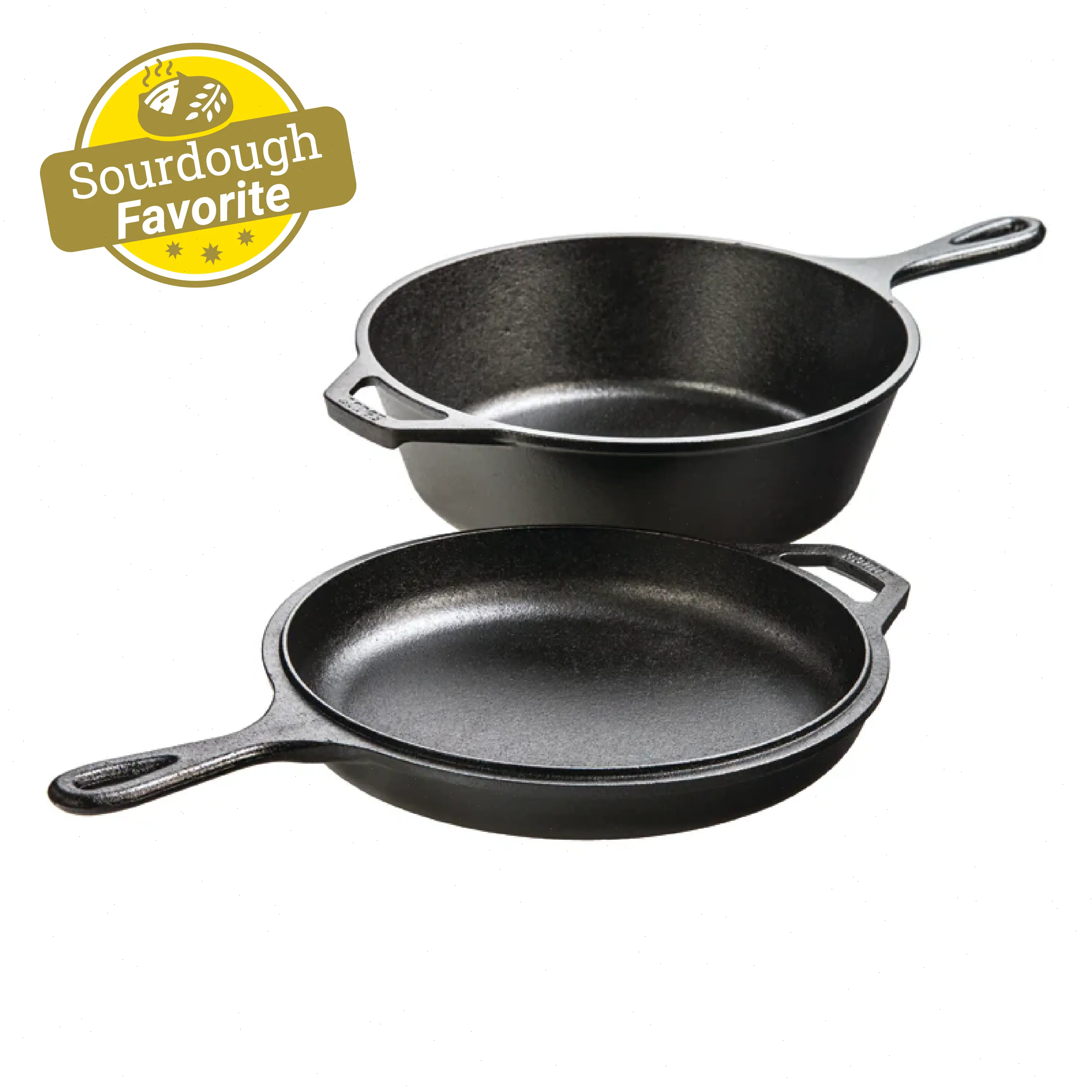 Meet the pan that sourdough bakers swear by. This 3.2 quart cast iron sourdough bread pan has a lot of range, though: it's a dutch oven and a skillet that doubles as a lid, for those keeping track. Made in the USA, this nontoxic cast iron is made without PFAS for a lifetime of baking, roasting, sizzling, and more. If you're looking for the best cast iron for sourdough, look no further. Ready to get started with sourdough baking? Learn more about making bread at home.