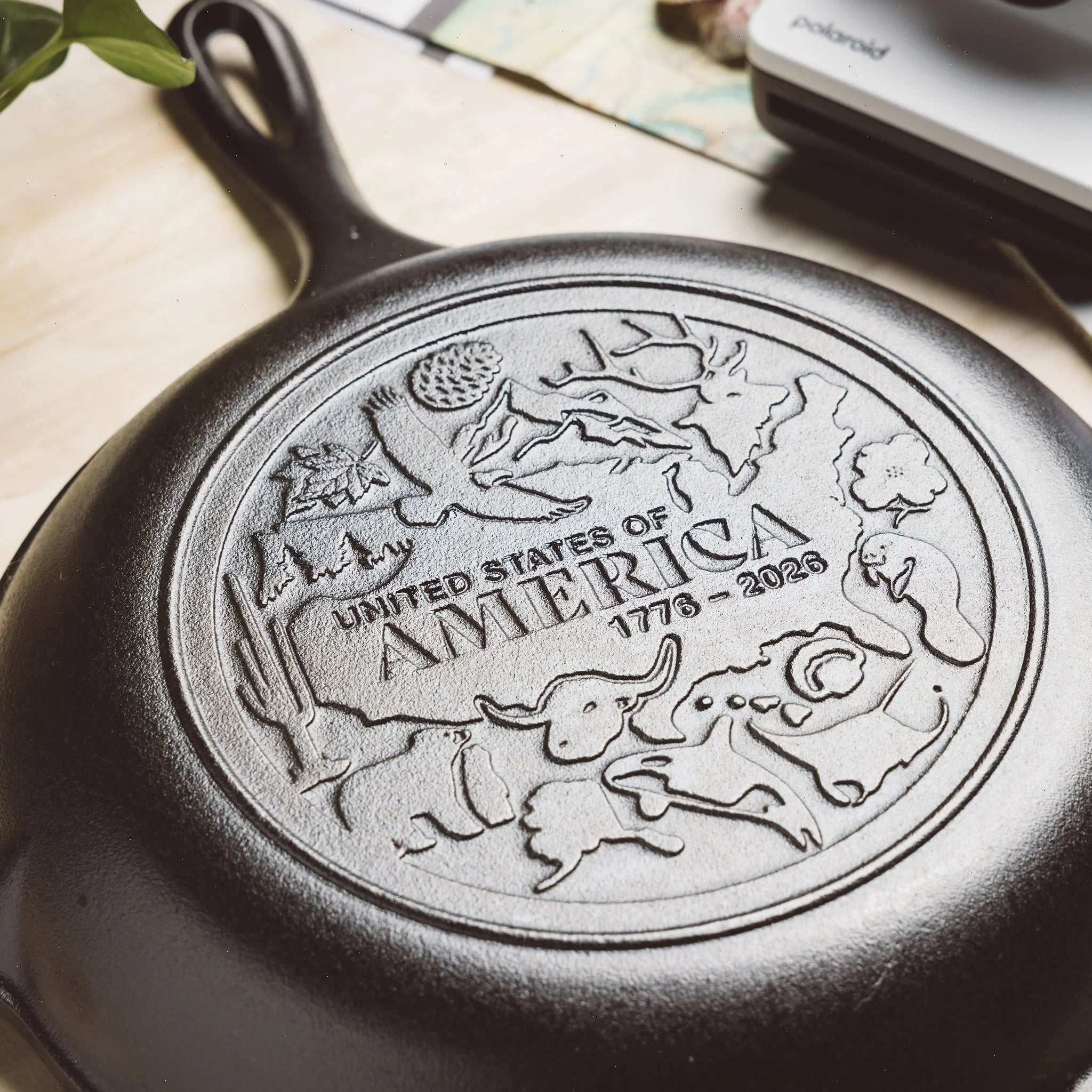 Celebrate America’s 250th Anniversary with a special-edition Chef Collection skillet! Featuring iconic creatures and symbols from across the country, the skillet is designed for cooking, gifting, and collecting. Chef Collection skillets feature sloped sidewalls and a raised handle, without compromising on classic cast iron performance. Seasoned with 100% vegetable oil, this 10 inch cast iron skillet is made without PFAS for a naturally nontoxic cooking experience. Plus, it gets better with every use. Proudly made in America since 1896.