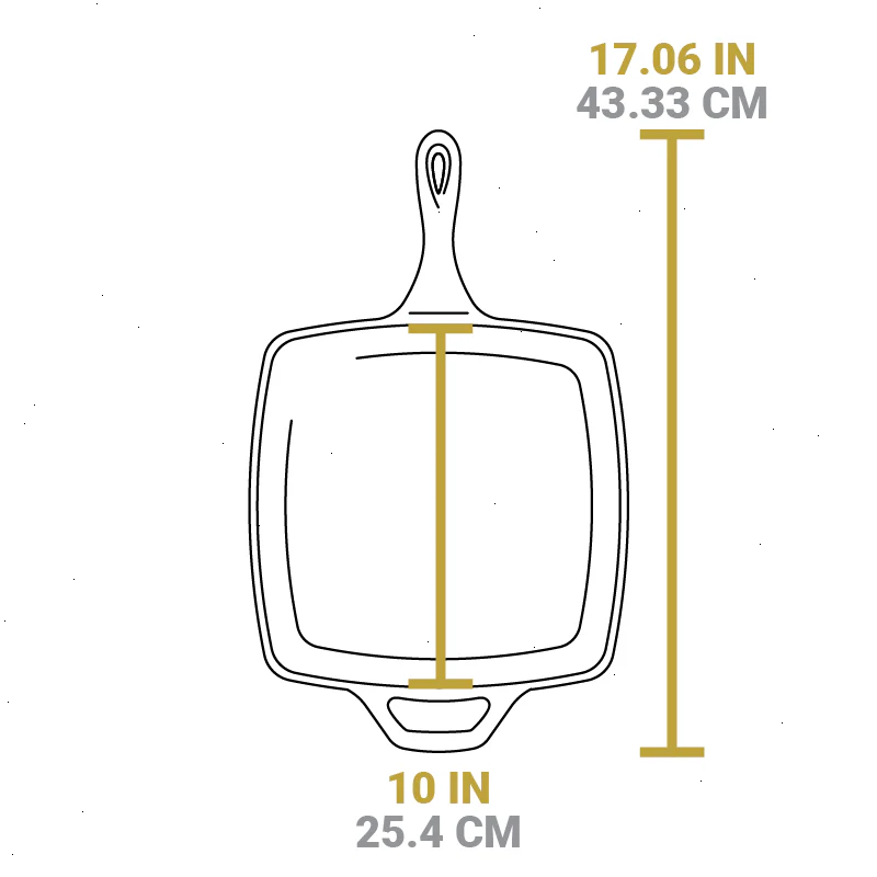 Our square skillet has edges that provide a large, naturally seasoned cooking surface for all your favorite dishes. Like the original Lodge cast iron skillet, it's crafted in America with iron and oil and ready to help you create delicious moments for generations.